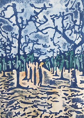 Dies ist ein handgemalter Druck, einer von drei, die ich gemalt habe - jeder mit einzigartigen Farben. |